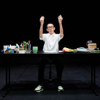 黃大徽《W.T.F》是西九單人表演藝術節的香港代表之一,他於香港表演藝術界亦是一個無可取代的異數。他的表演由實驗劇場開始,在跨界的概念幾乎未存在之前,持續構築游移於舞蹈界的框架邊緣,維持著知性、感受與想像之間微妙平衡的舞蹈/表演美學。《W.T.F.》是一個自傳式創作,整個演出只有一枱道具、講稿、及一把毫無特色的椅子,連現今演出幾乎是標準配備的投影都欠奉;大半時間黃大徽也幾乎沒離開過椅子,除了因應他講述的經歷作出展示特定動作,他就一直翻著講稿,直面觀眾說話。當然,他都出道超過三十年了,「當代表演」的概念亦已翻過幾轉,今天走進細盒看「黃大徽的作品」的觀眾,甚至可能有著看某種「經典的反舞蹈建制」的期待。而在此前提之下,是次《W.T.F.》的演出形式,說不定反而讓觀眾感覺太過四平八穩。